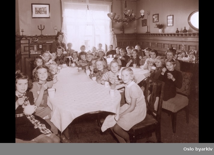 Foto: Bolteløkka 3. fellesklasse får danskesuppe i Fry Ramdahls spisestue i 1944
